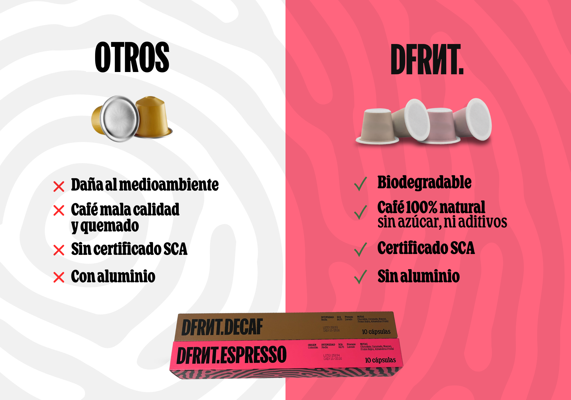 Em DFRNT unimos o melhor de dois mundos: café de especialidade 100% colombiano e cápsulas 100% biodegradáveis. Compatíveis com as tuas máquinas Nespresso.